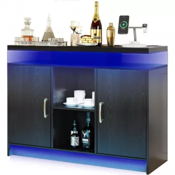 40" Floating Buffet Cabinet with LED Lights & Charging Station - Black Storage Unit