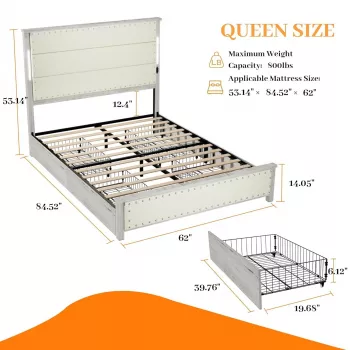 LED Bed Frame with Charging Station, Tall Headboard & 4 Storage Drawers