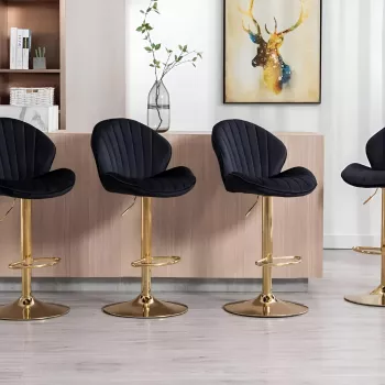 Modern Counter Height Swivel Bar Stools Set of 4 with Gold Base and Upholstered Back
