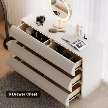 Modern Faux Leather 6-Drawer Dresser with Cabinet for Bedroom & Living Room