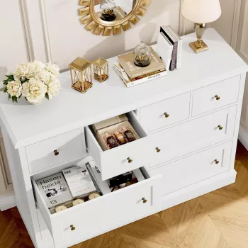 White 8-Drawer Dresser with Large Storage - 47.2" Chest of Drawers for Nursery & Bedroom